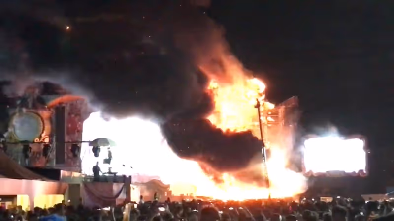 Großbrand auf der Bühne: Festival bei Barcelona endete im Chaos