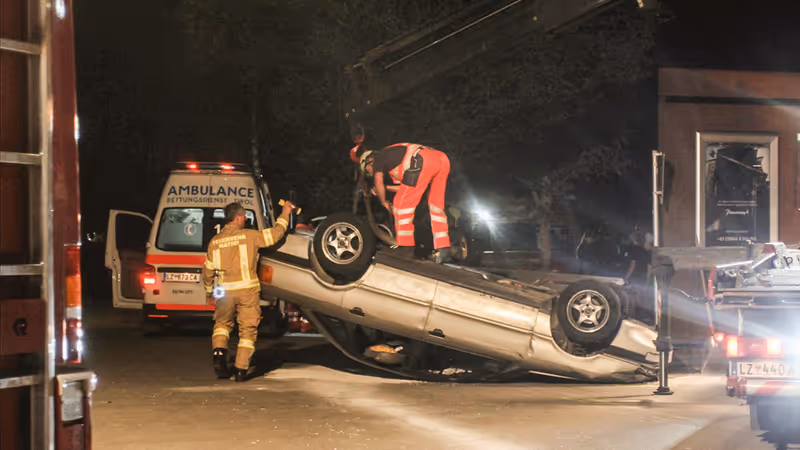 Beim Abbiegen in eine Gemeindestraße passierte dann das Unglück: Der Lenker war vermutlich zu schnell unterwegs, prallte gegen einen betonierten Beleuchtungskörper und verlor so die Kontrolle über das Fahrzeug. Das Auto geriet durch den Anprall in Seitenlage und überschlug sich. Dann schlitterte es rund 60 Meter auf dem Dach weiter und kam schlussendlich auf der Fahrbahn zum Stillstand.