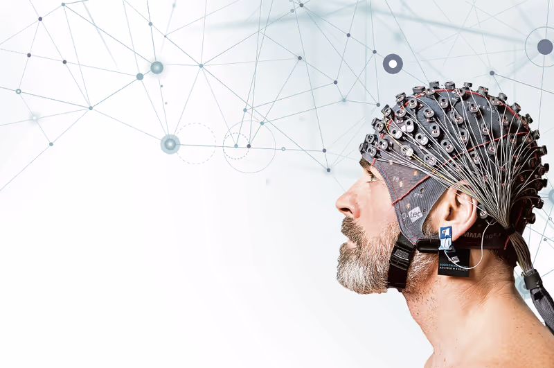 Die EEG-Kappe misst an der Schädeloberfläche elektrische Aktivitäten des Gehirns und leitet sie an einen Computer weiter.