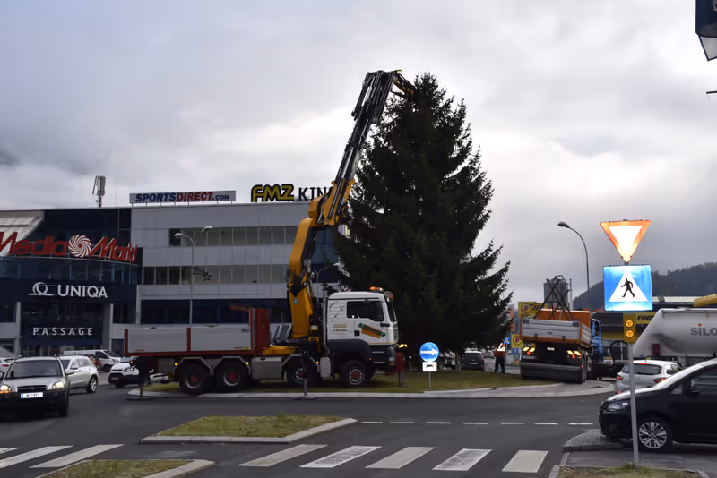 Imst –Seit gestern hat auch die Stadt Imst einen großen Schritt in die Weihnachtszeit gemacht: Bis zum Nachmittag wurden die vier großen Christbäume aufgerichtet. Begonnen wurde gleich in der Früh beim Kreisverkehr in der Industriezone. Dort wurde eine gut zehn Meter hohe buschige Fichte mit Hilfe eines Kranes aufgerichtet. Noch am Vormittag wurde auch der größte der Imster Weihnachtsbäume unterhalb der Stadtwerke aufgestellt. Am Nachmittag folgten die Bäume vor dem Rathaus und beim Betagtenhaus. „Dazu kommen dann nächste Woche noch gut 100 kleine Weihnachtsbäume, die wir für den Weihnachtsmarkt, Schulen und Kindergärten bereitstellen“, so Bauhofleiter Roland Thurner. (pascal)