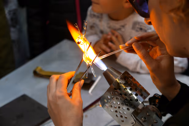 Aus Glas entstehen in den Händen von Veronika Petutschnig Kunstwerke. In der lebenden Werkstätte am Lienzer Christkindlmarkt können Kinder Stücke nach ihren individuellen Wünschen anfertigen lassen.