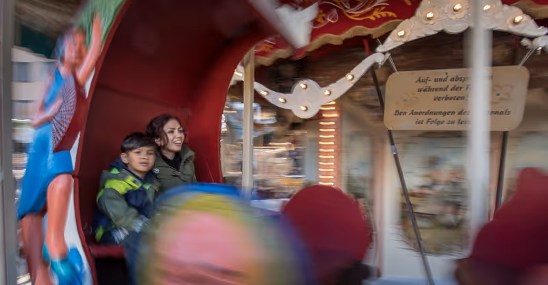 Am Marktplatz steht indes die kleine Lisa vor dem Karussell und überlegt, ob sie im Auto mitfahren will oder lieber auf einem Tier reiten. Mit dem Finger in der Nase kommt die Erkenntnis: „Das dicke Pferd." Die Mutter ist ratlos, doch das Kind erklimmt das buntbemalte Pferd und grinst breit.