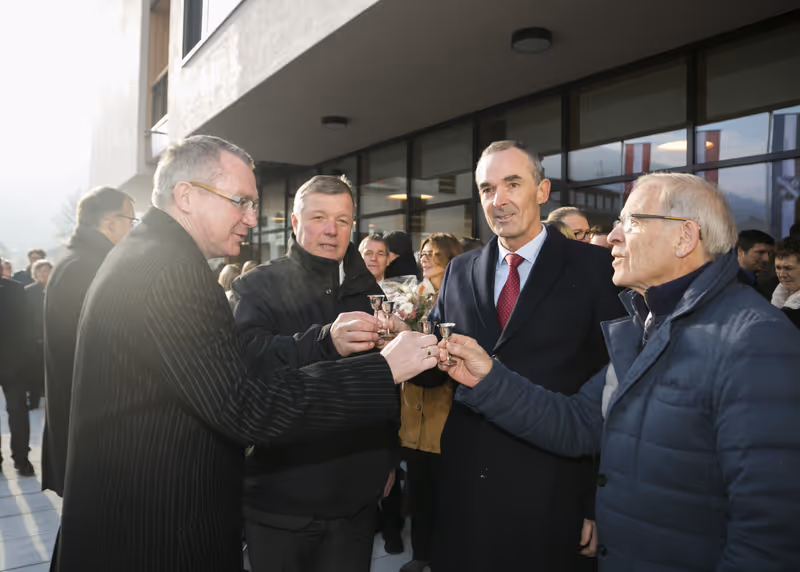 Mit dem „Haus am Kirchfeld“ rücke man pflegebedürftige und ältere Mitmenschen „mitten ins Ortszentrum“, freute sich BM Thomas Oberbeirsteiner. Das 16,7 Mio. Euro schwere Projekt wurde in eineinhalb Jahren Bauzeit realisiert. Die sieben Gemeinden des Planungsverbandes Wattens und Umgebung teilen sich – mit Unterstützung durch das Land Tirol – die Kosten für die stationären Betten. Die Finanzierung der Tagesbetreuung, der betreubaren Wohneinheiten und der Tiefgarage trägt zur Gänze die Marktgemeinde Wattens.