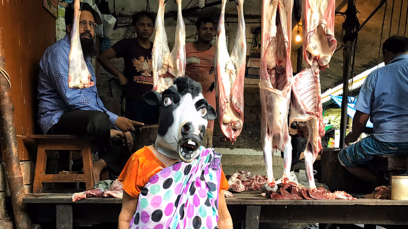 Wer ist mehr wert? Frau oder Kuh? Foto-Künstler Sujatro Ghosh stellt die provokante Frage.