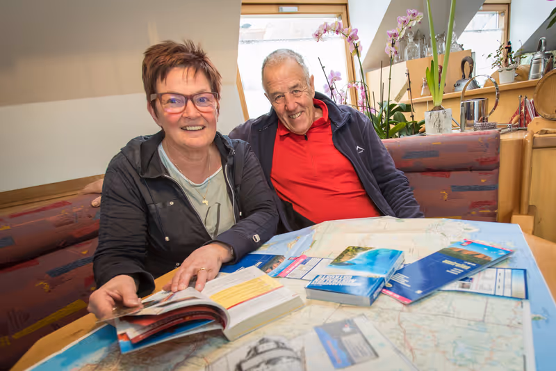 Seine Frau hält sich im Hintergrund und nickt hin und wieder beipflichtend. Wenn die beiden unterwegs sind, ist das aber ganz anders: Dann nimmt die 64-Jährige das Navigationsgerät in die Hand und zeigt ihrem Mann, wo es langgeht. Erika lacht: „Ich bin dann meistens schuld, wenn die Straßen schlecht sind und manchmal fragt er mich auch, ob ich jetzt wirklich das richtige Links oder das falsche Links meine.“