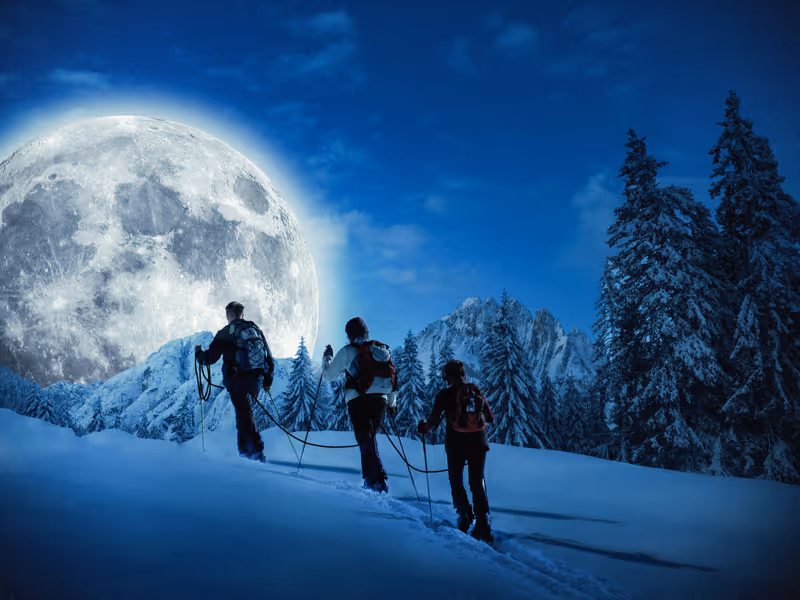 Eine Besonderheit des Bewerbs ist, dass er immer bei Vollmond oder kurz davor stattfindet. „Das ist eben ein besonderes Erlebnis, bei Mondlicht eine Skitour zu gehen“, begründet Hans Schneider vom Sportverein Tristach. Das Bild, das für den heurigen Bewerb Stimmung macht, soll das veranschaulichen. „Der Mond wird zwar nicht so groß sein wie auf der Fotomontage, aber groß genug, um die Strecke ,hinterm Kofl‘ in eine einzigartige Atmosphäre zu tauchen“, meint Grafiker Armin Zlöbl, der das stimmungsvolle Bild für den Nachttourenlauf kreiert hat.
