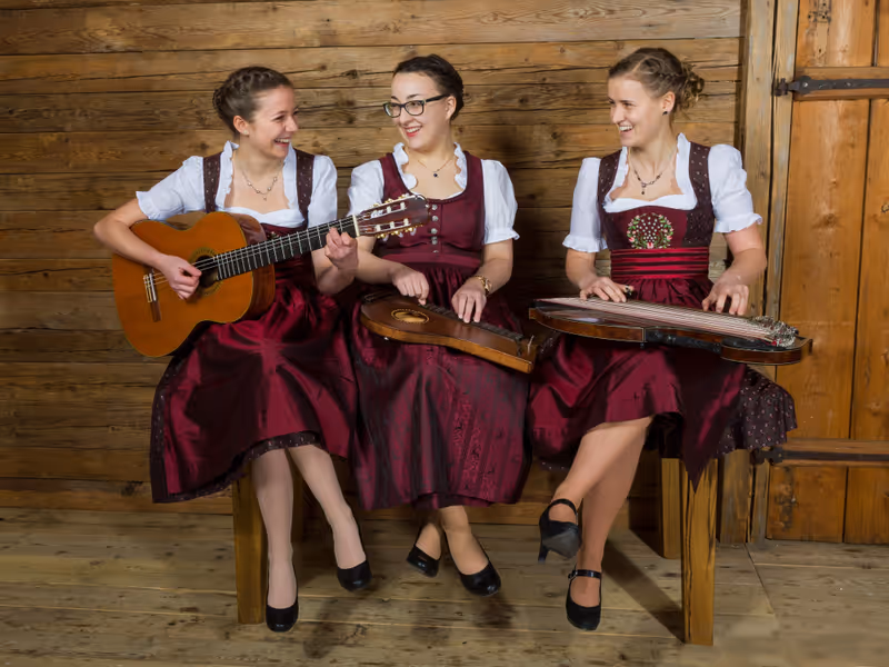 Die drei Musikerinnen, das sind die 17-jährige Johanna Krimbacher aus Kirchberg sowie Magdalena Pedarnig aus Schlaiten und Theresa Wopfner aus Thaur, beide 22 Jahre alt. Pedarnig und Wopfner studieren am Innsbrucker Standort des Mozarteums, Krimbacher besucht eine Vorbereitungsklasse des Landeskonservatoriums. Zither ist das Instrument, das allen dreien gemeinsam ist.