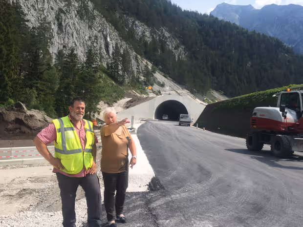 Bei den Bauarbeiten lief alles wie am Schnürchen, freut sich Günter Guglberger, Leiter der Abteilung Brücken- und Tunnelbau im Land Tirol. „Es gab Gott sei Dank keine größeren Arbeitsunfälle.“ Auch der Kostenrahmen wurde eingehalten – was nicht ganz selbstverständlich ist angesichts der Dimension des Projekts. Zudem liegt man auch im Zeitplan, trotz des strengen Winters. „Wir mussten aufgrund der Kälte und der ernormen Schneemenge – in Scharnitz lagen bis zu zwei Meter Schnee – die Bauarbeiten vorübergehend einstellen“, erklärt Guglberger. Mittlerweile fehlen nur noch „Restarbeiten“. Derzeit sind von Montag bis Freitag täglich rund 15 bis 20 Arbeiter auf der Baustelle im Einsatz.