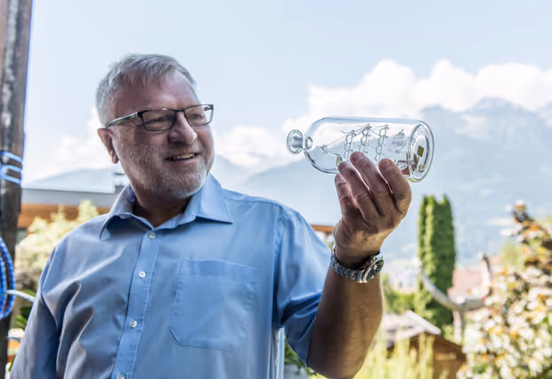 Telfs –Quer über den Balkon ist ein dicker Strick gespannt und mit Seemannsknoten befestigt. Die Wäscheleine ist auf den ersten Blick das einzige Indiz dafür, dass man sich im Haus eines passionierten Hochseeseglers befindet. Auf den zweiten fallen einem die Hochglanzmagazine auf, die Yacht, Yacht Revue und Palstek heißen. Dann bringt Albert Plachel eine Glasflasche und alles ist klar. Darin befindet sich ein filigranes Modell eines Segelschiffs. „Das haben mir meine Eltern geschenkt“, erzählt der Steirer, der in Wien aufgewachsen ist und bereits mehr als die Hälfte seines Lebens in Telfs verbringt. Wenn er nicht auf hoher See ist.