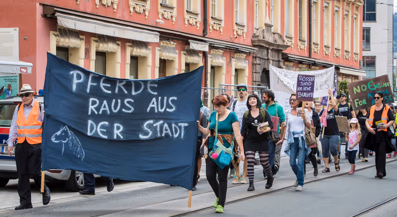 ,,Pferde raus“: Demo in Innsbruck gegen Fiaker und berittene Polizei