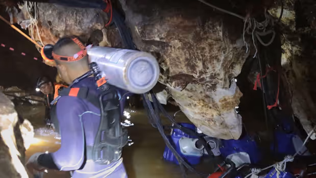 Der Tauchgang durch die weitverzweigte Höhle ist schon für Profis kräftezehrend. Die Buben und ihr Trainer waren erst in den vergangenen Tagen mit den Grundregeln des Tauchens vertraut gemacht worden, einige von ihnen können nicht einmal schwimmen.
