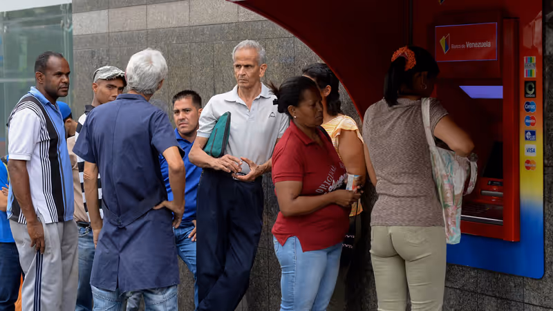 Der Montag war in Venezuela Feiertag, am Dienstag bildeten sich lange Schlange vor den Bankomaten. Allerdings konnten Kunden jeweils nur zehn Bolivar abheben, wofür man in dem von einer starken Inflation gebeutelten Venezuela nicht einmal einen Kaffee bekommt.