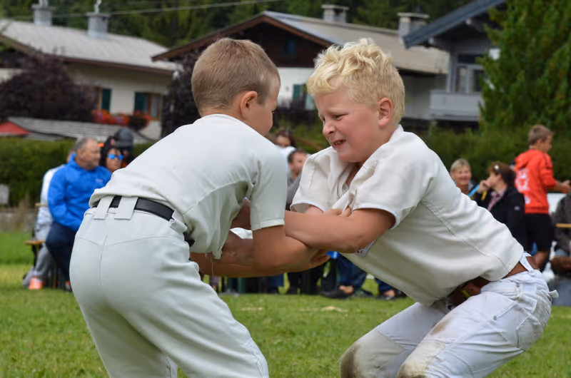 Ab 13 Uhr messen sich die besten Ranggler aus Tirol, Salzburg, Bayern und Südtirol, von der Schülerklasse bis zur Allgemeinen Leistungsklasse beim „Fairhotel" in Hochfilzen. Die Ranggler küren hier ihren „Hogmoar", so der Titel des Siegers.