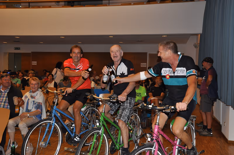 Vier junge Männer auf Fahrrädern haben am Donnerstag die Herzen der Roppener Kinofreunde erobert. Umgesteckt auf Stromgeneratoren erzeugen die Fahrräder jeweils 70 bis 150 Watt und betreiben so Beamer, Sound und Laptop, was zusammen mindestens 350 Watt benötigt, um großes Kino auf die Leinwand zu bringen. In Roppen wurde die Veranstaltung vom e5-Team der Gemeinde gemeinsam mit den Roppener Mountainbikern aufgrund des unbeständigen Wetters gleich im Kultursaal ausgetragen. Gezeigt wurde „Oube Doube, Hou“ von Harald Auer, Heinz Söllner und Franz Knabl. Der Film hatte seine Uraufführung vor acht Jahren ebenfalls im Kultursaal gefeiert. Als Streifen über „eine Landwirtschaft ohne Riesentraktoren und ohne Förderungen“ pries Bürgermeister Ingo Mayr die Produktion im Vorfeld an.