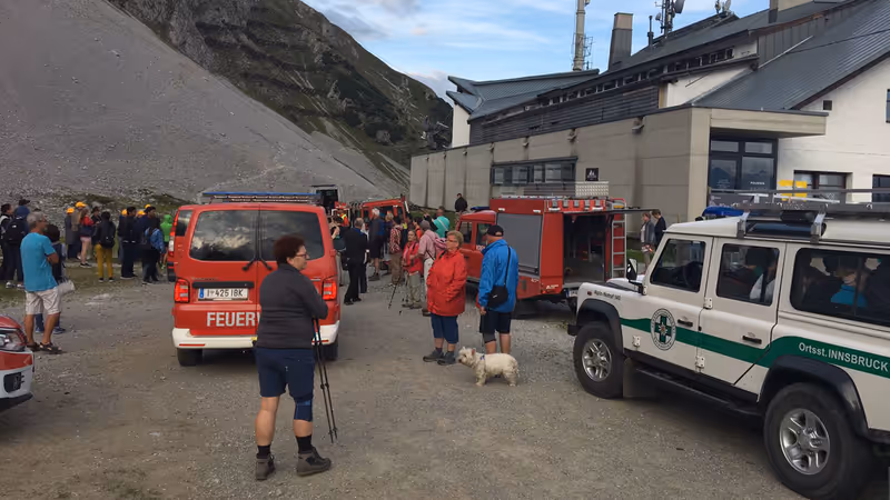 Die Nordkettenbahn hatte aufgrund eines technischen Defekts den Betrieb einstellen müssen. Die Gäste wurden von Bergrettung und Feuerwehren von der Seegbrube ins Tal gebracht.