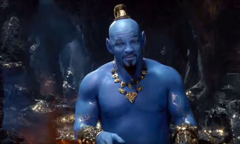 Will Smith als blauer Flaschengeist „Dschinni“ im „Aladdin“-Trailer