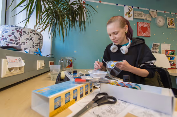 Innsbruck –Außen ist es düster-grau, innen bunt wie der Fisch, den Kerstin auf eine Glasschüssel malt. Sie sitzt im zweiten Stock des Gebäudes gleich gegenüber dem Innsbrucker Bahnhof, legt den Pinsel beiseite, dann die Glasschüssel, auf der bereits eine Unterwasserwelt zu erkennen ist. „Ich habe einen Hauptschulabschluss, aber Lehre habe ich einfach keine bekommen“, sagt die 19-Jährige und senkt ihren Blick.