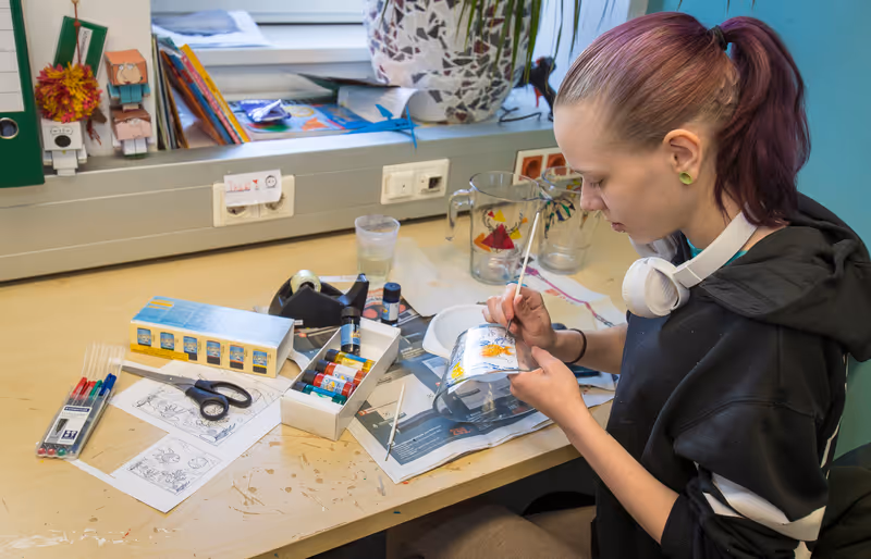 Kerstin jedenfalls ist davon begeistert. Mit jedem Pinselstrich formt sie ihre eigene Welt in ihrem Kopf. Eine Struktur möchte sie finden, im kreativen Bereich möchte sie arbeiten. „Vielleicht werde ich Kindergärtnerin“, sagt die 19-Jährige und zuckt mit ihren Achseln. Und wie sie den Fisch auf der Glasschüssel Fleck für Fleck bemalt und ihm ein goldiges Schuppenkleid verleiht, entwirft sie ihr eigenes – ihre Zukunftsvisionen und Ziele, denen sie selbst wie ein goldiger Fisch entgegenschwimmen möchte. Mit Plan, Struktur und einem zielstrebigen Blick.