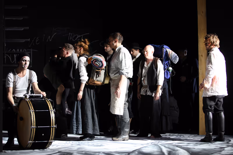 Exekutor des Befehls ist der blutrünstige Reiter und ehemalige Mönch, dem Claudius von Stolzmann interessante Züge eines gefährlichen wie sentimentalen Eiferers verleiht. Während der Altbauer Rott (Michael König) lange glaubt, mit Schein-Konversion durchzukommen, halten seine Söhne am evangelischen Glauben fest. Raphael von Bargen (etwas knorrig) verkörpert Karl Schönherrs aufrecht-beharrlichen Helden Christoph Rott, der dem Feind auch den Freitod seines jungen Sohnes (hyperaktiv: Swintha Gersthofer) verzeihen wird, während sein Bruder Peter (berührend: Gerhard Kasal) der schieren Verzweiflung anheimgefallen ist. Silvia Meisterle (die katholische „Rottin“), Elfriede Schüsseleder als deren Mutter und Alexandra Krismer als vom Reiter gemeuchelte Sandpergerin stemmen souverän ihre eher undankbaren Rollen. Spannend wird der Abend an den Rändern, wenn mit Kesselflick-Wolf (Ljubiša Lupo Grujcˇic´) und Straßentrapperl (Susanna Wiegand) zwei sehr heutige Obdachlose, „Fremde“ (vergeblich?) Anschluss an die Gemeinschaft der Vertriebenen suchen. Ob das begeisterte Premierenpublikum, so wie es der Wunsch der Regisseurin wäre, seine Schlüsse zieht zu religiöser Intoleranz und Ausgrenzung im Hier und Jetzt, sei dahingestellt.