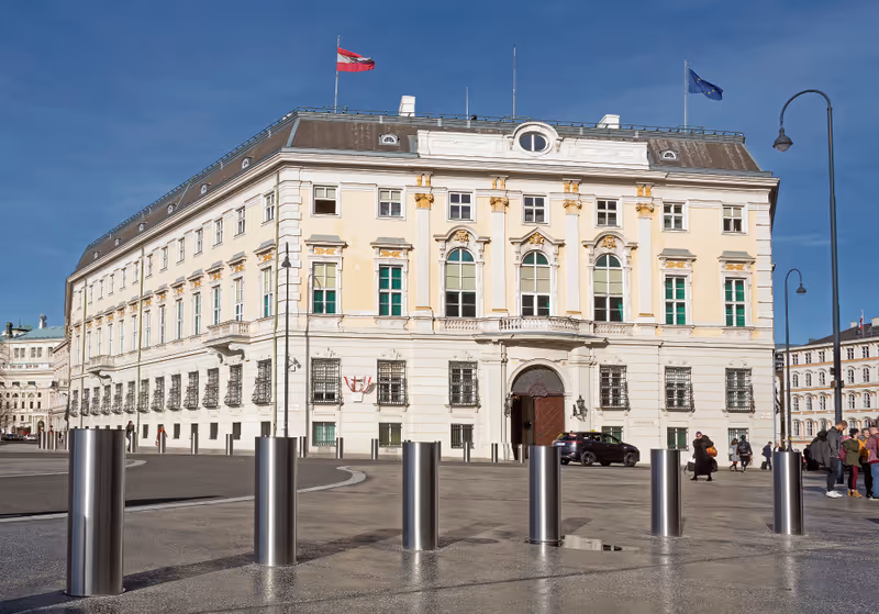 Eigentlich hätten im Regierungsviertel am Ballhausplatz, konkret vor Kanzleramt und Präsidentschaftskanzlei, 80 cm hohe Mauerblöcke für Sicherheit gegen Aufprallangriffe sorgen sollen. Mitten im Nationalratswahlkampf 2017 machte allerdings der Boulevard, allen voran die Kronen Zeitung, Stimmung gegen die Pläne. Es kam zu einem veritablen Regierungsstreit zwischen SPÖ und ÖVP über Auftragserteilung und Optik, schließlich veranlasste das damals noch von SPÖ-Chef Christian Kern geführte Kanzleramt eine Umgestaltung mit Pollern.