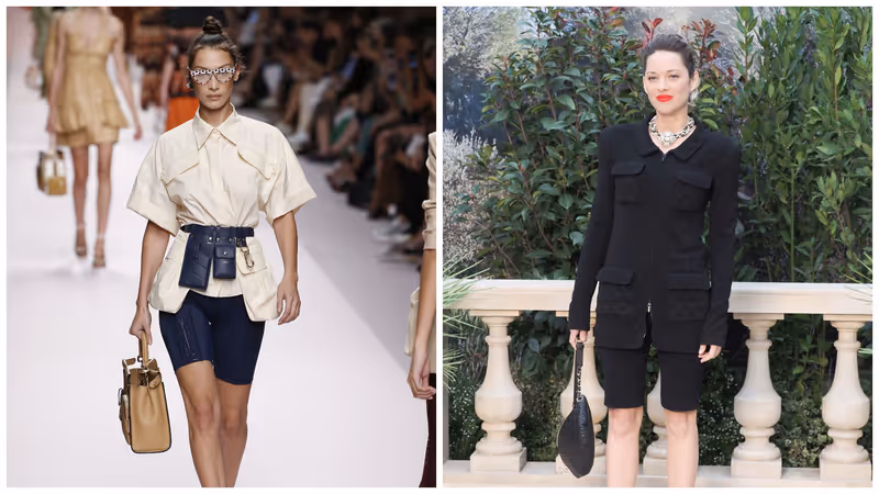 Supermodel Bella Hadid lief für Fendi in blauer Radler über den Laufsteg (l.). Bei Chanel wurde die Radler mit edlem Blazer aufgewertet.