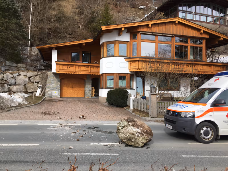 Felsbrocken stürzte in Kössen auf Hausdach und Straße