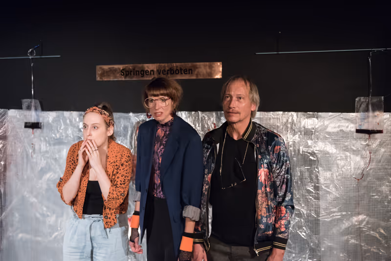1972. Künstler David Hockney porträtiert zwei Figuren am Pool und erschafft damit das aktuell teuerste Gemälde eines lebenden Künstlers. Im Gegensatz zu dieser Erfolgsstory wird der Pool als ultimatives Statussymbol der Erfolgreichen bei „pool (no water)", dem aktuellen Stück im Innsbrucker Theater Praesent, der zentralen Figur zum Verhängnis. Anders als bei Hockney fehlt dem Pool das Essenzielle, das Liquide, kurzum: das Wasser. Und das hat Folgen: Das einzige einigermaßen erfolgreiche Mitglied eines nicht mehr ganz so hippen Künstlerkollektivs (gespielt von Therese Hofmann, Stephan Lewetz und Margot Mayrhofer) wird beim Sprung ins kalte Nichts schwer verletzt. Mitleid? Fehlanzeige! Neid und die Sucht nach Anerkennung ließ aus der einst echten Freundschaft ein künstliches Nebeneinander werden. Und das wird im Stück des britischen Dramatikers Mark Ravenhill in drastische Worte gepackt. Er führt vor, was die drei im Prekariat gefangene Künstler antreibt: Es geht um Eitelkeit und die Sucht nach Anerkennung. „In-yer-face" wird diese Art des Theatermachens genannt: direkt, unverblümt, schonungslos und (absichtsvoll) schockierend. In „pool (no water)" gipfelt die Abrechnung mit pseudo-kunstbeflissenen Berechnungen, im Versuch, den versehrten Körper der Ex-Kollegin auf dem Kunstmarkt auszuschlachten.