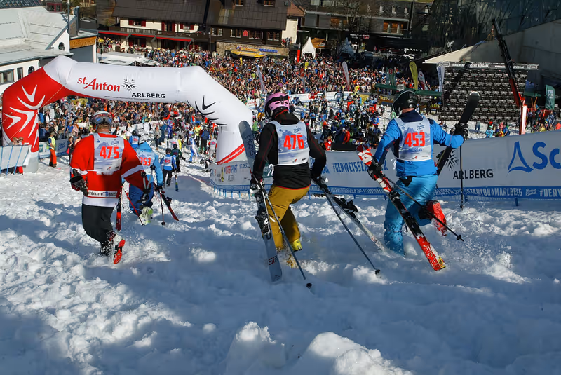 Mehr als 550 Wintersportler gleichzeitig stürzen sich am Ostersonntag beim „Weißen Rausch“ die Pisten am Arlberg hinunter.