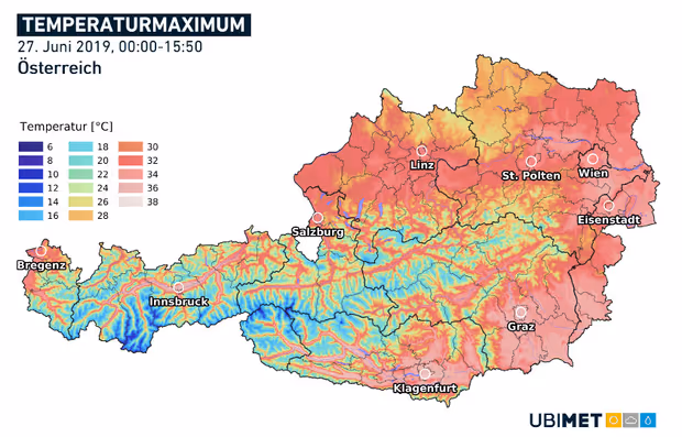 Sonntag und Montag heizt die Sonne den Österreichern dann noch einmal kräftig ein: 35 Grad und mehr sind laut Meteorologen zu erwarten. Erst in der Nacht auf Dienstag und dann auch tagsüber verabschiedet sich aus derzeitiger Sicht die extreme Hitze erst einmal – mancherorts auch mit einem kräftigen Knall. Regenschauer und teils heftige Gewitter bringen Abkühlung. Ab Mittwoch sind dann normale Sommertemperaturen in ganz Österreich zu erwarten.