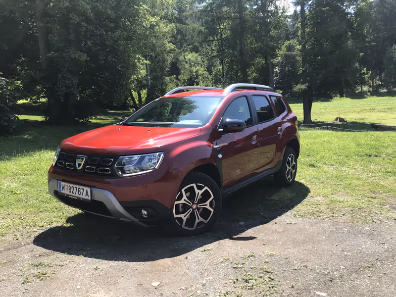 Mitten im Großstadtdschungel und auf Waldwegen absorbieren sie aber auch allzu grobe Stöße, wie die TT beim Test der Allradversion mit 115-PS-Diesel feststellen konnte. Unser Allrad-Duster kam in der Top-Version Charisma, die zum Prestige für 750 Euro Aufpreis noch etwas Bling-Bling, eine Klimaautomatik und ein schlüsselloses Zugangssystem mitbringt. Der teuerste aller Duster bilanziert dann bei 21.590 Euro. Für einen gestandenen Allrad-SUV mit Euro6d-Temp-Diesel ein fast schon aberwitziger Preis, da der Dacia auf modernste Allradtechnik aus dem Hause Renault/Nissan zurückgreifen kann. Die funktionierte im Test auch auf Schotter ausnehmend gut, zumal auch Bodenfreiheit und Böschungswinkel den Duster nicht allzu sehr einschränken. Dazu gibt es eine Anfahrhilfe und eine Bergabfahrhilfe.