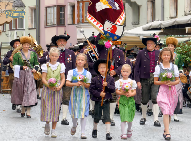 Rattenberg –Dem anhaltenden Regen trotzten am Sonntag in Rattenberg 1000 Musikanten von 17 Kapellen aus der Umgebung. Um 13 Uhr setzte sich der große Festumzug des 98. Bezirksmusikfests vom Westparkplatz aus in Bewegung und führte die Teilnehmer – wie es bereits seit 1921 Tradition ist – auf den Schlossberg, wo jede der Kapellen ein kurzes Konzert spielte.