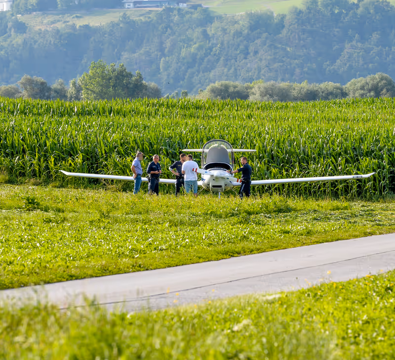 Ein deutscher Pilot war alleine von Kroatien aus auf dem Weg nach Deutschland. Er versuchte den Flughafen Innsbruck zu erreichen, musste aber in einem Feld notlanden. Niemand wurde verletzt.