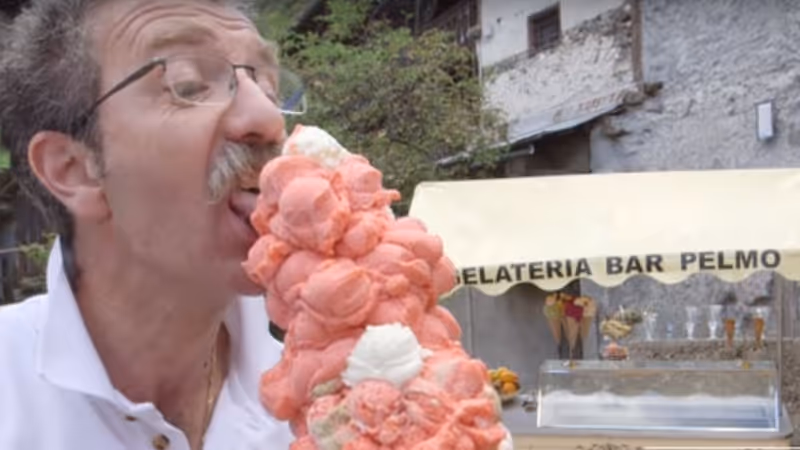 Wackelige Angelegenheit: 125 Kugeln Eis — in nur einer herkömmlichen Tüte? Das schaffte 2017 der Italiener Dimitri Panciera und eroberte sich damit den Weltrekord im „Eiskugeln balancieren". Ob er das Eis später auch aufgegessen hat, ist nicht bekannt.