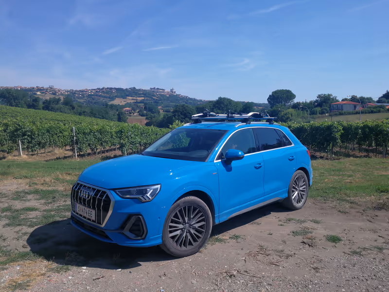 Dort wird natürlich in höchsten Tönen der Q3 der zweiten Generation gepriesen – die Frage ist nur, ob sich das mit dem tatsächlichen Verhalten des Kompakt-SUV in der realen Welt deckt. Seit annähernd drei Monaten sind wir nun schon mit dem 4,48 Meter langen Hochbau unterwegs – mehr als 5000 Kilometer hat der Dauertestwagen bisher hinter sich gebracht, auf so abwechslungsreichen Strecken wie in den Schwarzwald oder nach Kalabrien. Ob auf frischem Asphalt, brüchigem Teer oder Forststraßen – der Eindruck, den das Fahrwerk hinterließ, war dabei ein durchwegs positiver. Nicht zu straff und auch nicht zu soft ist der Q3 abgestimmt.