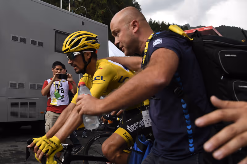Dem Bub war im Regen von Valloire nach der 18. Etappe der Tour de France offenbar deutlich zu kalt geworden war. Der 27-jährige Alaphilippe nahm sein Trikot ab, hing es dem schlotternden Knirps um und erledigte die restliche Medienpflicht im Trikot seiner Deceuninck-Quick-Step-Mannschaft.