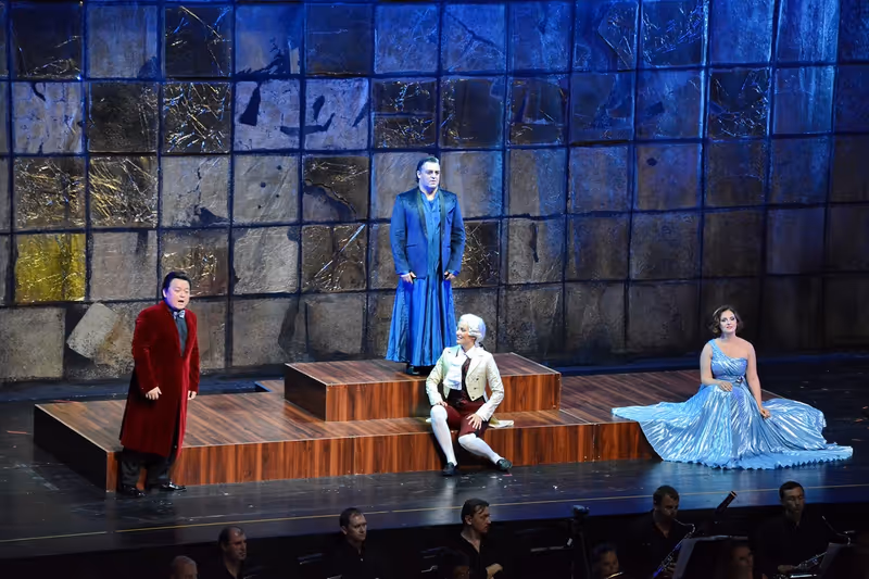 Zaide, gesungen vom wachsenden, weichen Sopran Sophie Gordeladzes, präsentierte ihre drei unterschiedlichen Arien, Santiago Sanchez, der Sultan in Mozarts erster Türkenoper, sein über die „Verfluchte Liebe, Folter des Herzens“ wütendes Melodram samt Arie. Hui Jins Tenor (Gomatz), der sich verfestigt, wächst über Mozart hinaus.