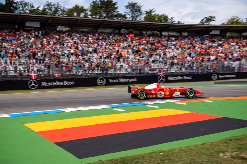 Mick Schumacher genoss die Demonstrationsfahrt in einem alten Ferrari seines Vaters Michael vor dem Formel-1-Heimpublikum in Hockenheim in v...