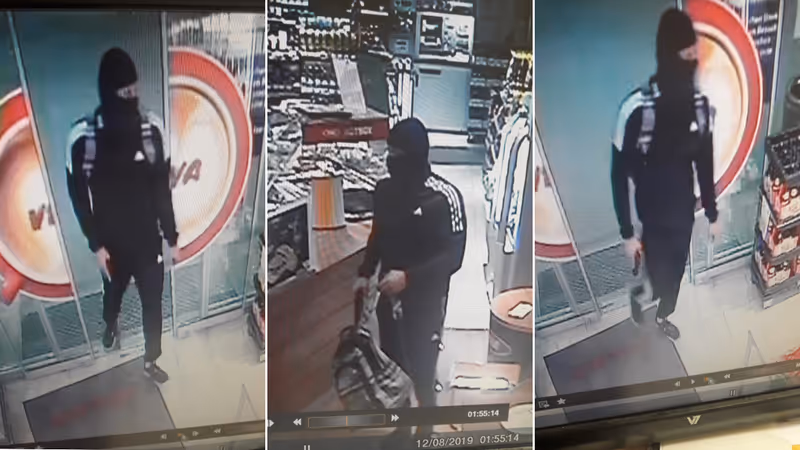 Der Täter ist laut Polizei etwa 1,80 Meter groß und muskulös. Er trug zur Tatzeit einen schwarzen Adidas-Trainingsanzug mit drei weißen Streifen bei den Armen und hatte einen blauen Rucksack bei sich. Sein Gesicht verbarg er hinter einer schwarzen Sturmhaube.