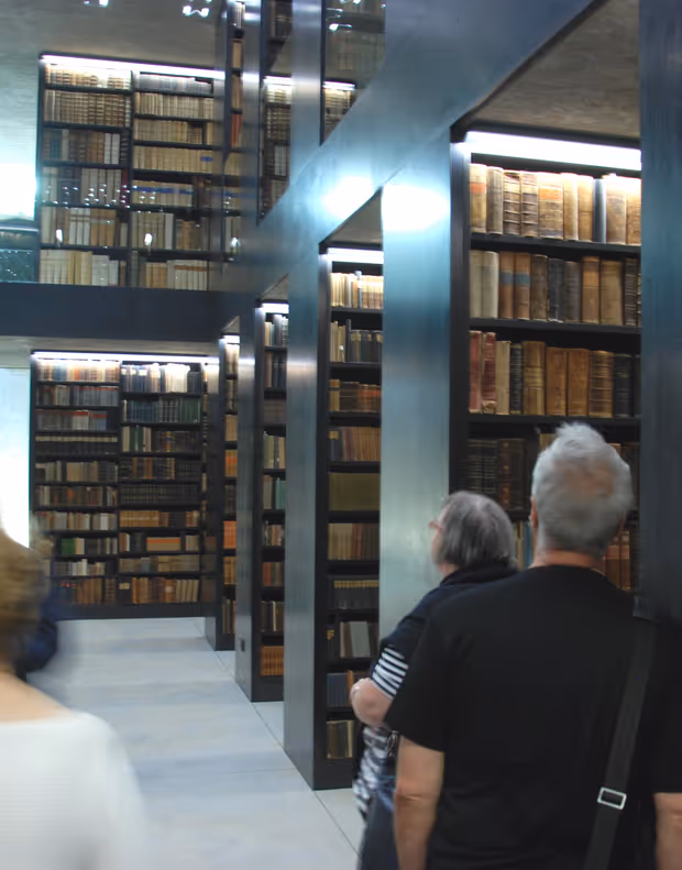 Das älteste gedruckte Buch stammt aus dem Jahr 1468. Darüber hinaus gibt es eine Sammlung handschriftlicher Dokumente. Das Raumklima in der nach aktuellen wissenschaftlichen Erkenntnissen in uralte Klostermauern eingebetteten Bibliothek lässt Schädlingen keine Chance. „Womit die Bücher für die Zukunft gerettet sind“, stellt Andreas Waldner fest, der seit wenigen Wochen durch die im Juni eröffnete Schatzkammer des Klosters führt.
