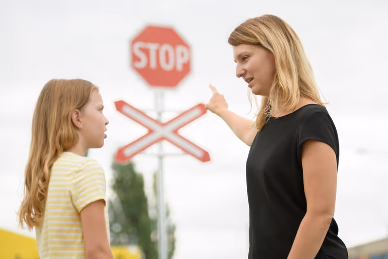 Straße überqueren: Zebrastreifen können gefährlicher sein, als man glaubt. Dem Kind sollte deshalb klar gemacht werden, dass es in jedem Fall warten muss, bis alle Autos zur rechten und linken Seite angehalten haben, bevor es die Straße überqueren kann.