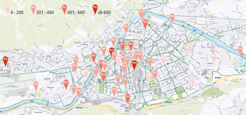An insgesamt 43 Stationen in Innsbruck können 360 Stadträder ausgeliehen werden, fünf Standorte sind bei den RadlerInnen besonders gefragt.