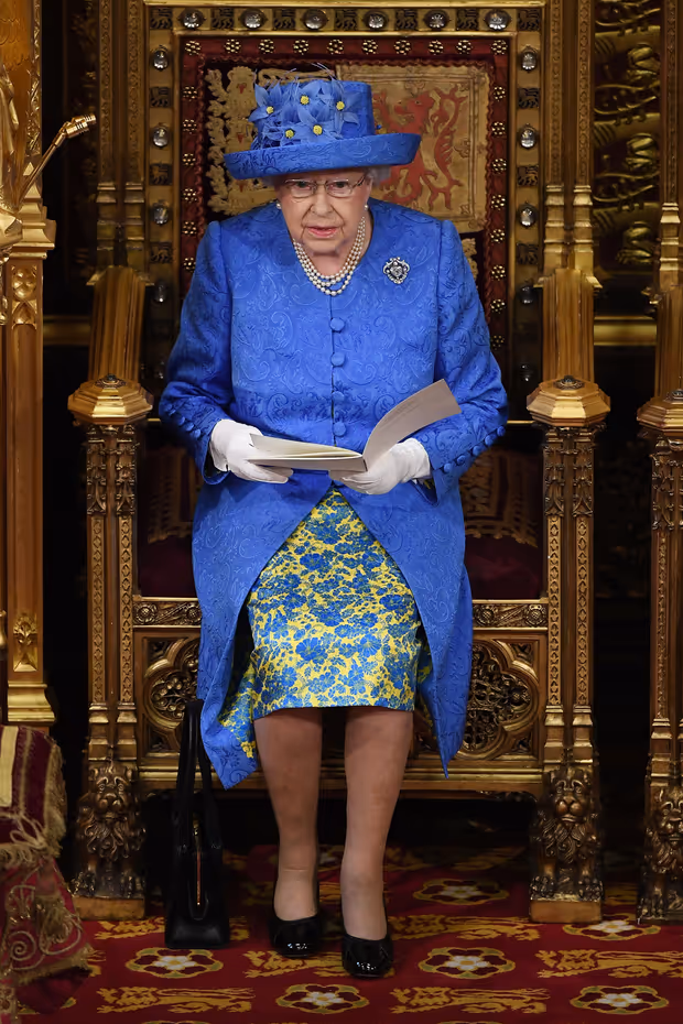 Eine ähnliche Diskussion entfachte bereits nach der Regierungserklärung im Sommer 2017. Damals trug die Queen ein blaues Kleid samt passendem Hut mit gelben Blumendetails. Eine Hommage an die EU-Flagge, meinten einige. Der britische Parlamentarier Paul Flynn bezeichnete die Kopfbedeckung gar als „Anti-Brexit-Hut“.
