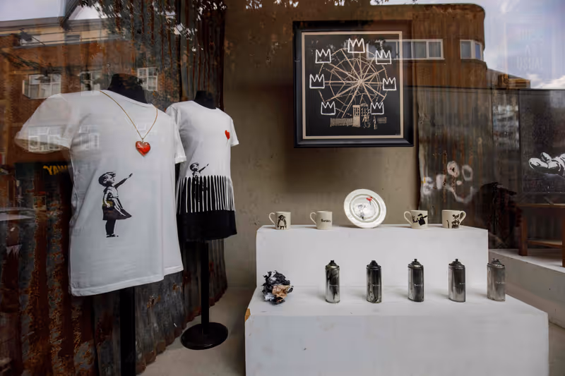 Street-Art-Künstler Banksy hat in London ein Geschäft eröffnet. Kaufen kann man seine Werke aber nur via Online-Shop. Hintergrund ist der Versuch eines Kartenherstellers, unter dem Namen des Künstlers seine Produkte zu verkaufen.