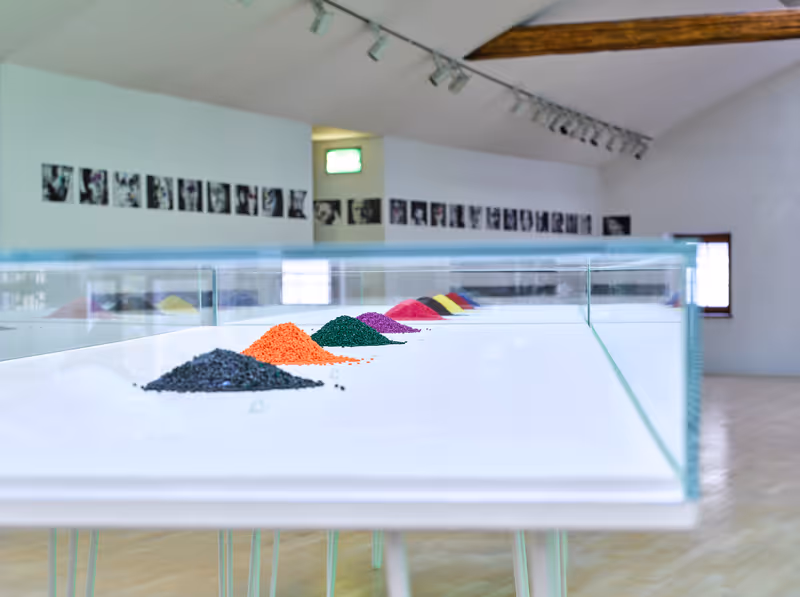 Anwander ist in jeder Hinsicht rigide. Etwa indem sie Abbildungen der Arbeiten des Konzeptkünstlers Maurizio Cattelan aus dem Magazin Flash Art ausradiert oder indem sie sich in ihrer Diashow „In the studio“ telepathisch ins Gedächtnis berühmter Kuratoren, Museumschefs oder Kritiker ruft. Rigide, weil sie den Druck, der auf jungen Künstlern lastet, kennt. Ihr Druckablassen macht Spaß. Und wirft Fragen auf: Im Zurschaustellen von purem Material (Gips oder Granulat, das für den 3D-Drucker verwendet wird) sinniert Anwander all jene Werke herbei, die noch nicht entstanden sind oder die der Künstler doch nicht realisieren wollte (oder nicht konnte?).