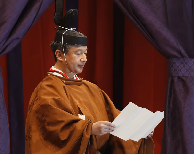 In der Früh hatte Naruhito noch bei strömendem Regen die heiligen Schreine „Kashikodokoro“, „Koreiden“ „Shinden“ besucht, um den Gottheiten mitzuteilen, dass er später im Tagesverlauf seine Regentschaft verkünden wird. Naruhito hatte sein Amt am 1. Mai nach Abdankung seines Vaters Akihito übernommen. Naruhito ist damit der 126. Kaiser der offiziellen Abfolge.