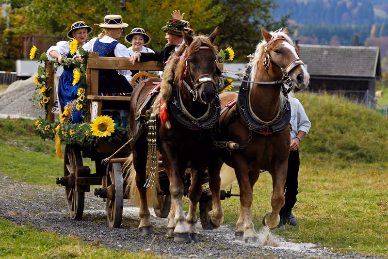 1704 wurde das erste Mal der Festumzug mit Vieh und bekränzten Fuhrwerken den Schutzheiligen der Kirche, St. Nikolaus und St. Leonhard, gewidmet. Am 6. November 1994 wurde der Brauch nach einer Pause von 37 Jahren wiederbelebt.