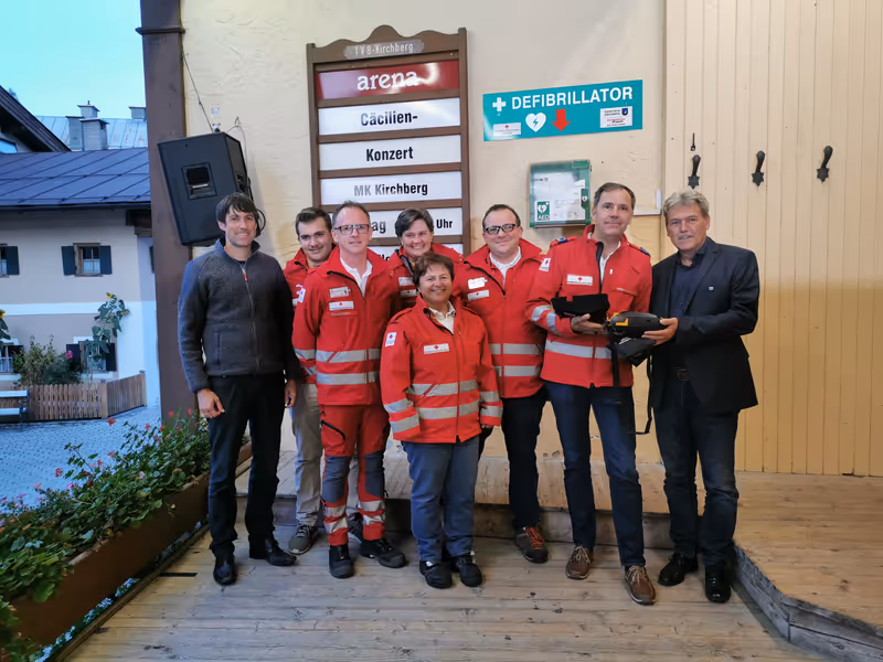 Kirchberg i. T. –„Wenn es zu einem Notfall kommt, zählt jede Sekunde“, sagt Gerhard Pfeifer, seines Zeichens Ortsstellenleiter der Rotkreuz-Ortsstelle Kirchberg. Er und seine Kameraden können sich nun über einen neuen Defibrillator direkt am Kirchberger Dorfplatz freuen. Das Rote Kreuz hat in Zusammenarbeit mit der Gemeinde und dem Tourismusverband Kitzbüheler Alpen – Brixental die Aktion „Sicheres Kirchberg“ ins Leben gerufen.