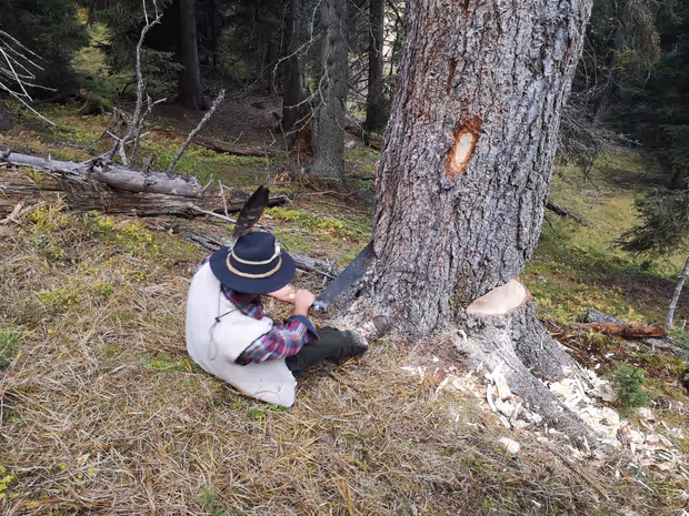 Das Fällen des Baums ist der traditionelle Auftakt der Fasnacht, die offiziell mit dem Naz-Ausgraben am 5. Jänner beginnt. Ausgewählt wurde die Fichte von Waldaufseher Hansi Hann. Es sei ein „g’rechter Boum“ fürs Blochziehen, bemerkte er danach zufrieden. Das Fällen machte man sich nicht einfach. Die Motorsäge nahm man erst zum Entasten in Betrieb – alles davor war Muskelkraft. Zuerst kam die Hacke, dann die Wiegsäge zum Einsatz – selbst bei niedrigen Temperaturen war das eine schweißtreibende Arbeit.