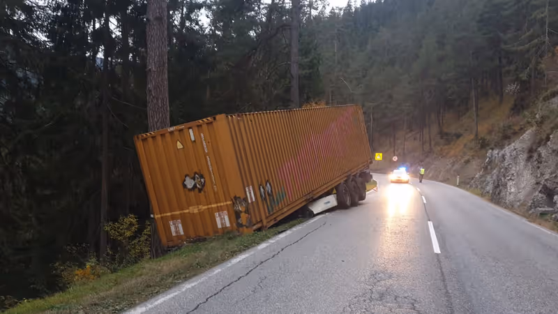 Sattelschlepper verlor am Fernpass Aufleger: Baum verhinderte Absturz
