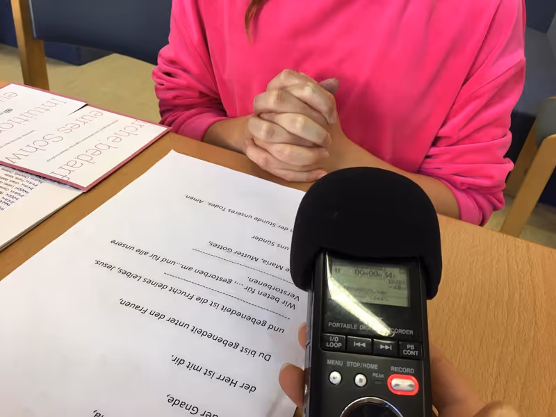 Ein Bestattungsunternehmen hat alle seit dem letzten Allerheiligentag Verstorbenen aufgelistet (Datenschutz besteht laut Auskunft des Unternehmens übrigens nicht mehr, sobald die Angehörigen die Parte freigegeben haben). Alle Schüler haben dann das „Gegrüßt seist du, Maria“ mit jeweils dem Namen eines Verstorbenen aus Leisach, Lienz und Tristach in ein Aufnahmegerät gesprochen. „Es war bewegend, zu sehen und zu hören, mit wie viel Andacht und Herz die Mädchen und Buben an diese Sache herangegangen sind“, berichtet die Religionslehrerin. Zweieinhalb Tage hat es gedauert, bis alle Aufnahmen fertig gestellt waren. Ein heimischer Radiosender unterstützte das Projekt technisch.